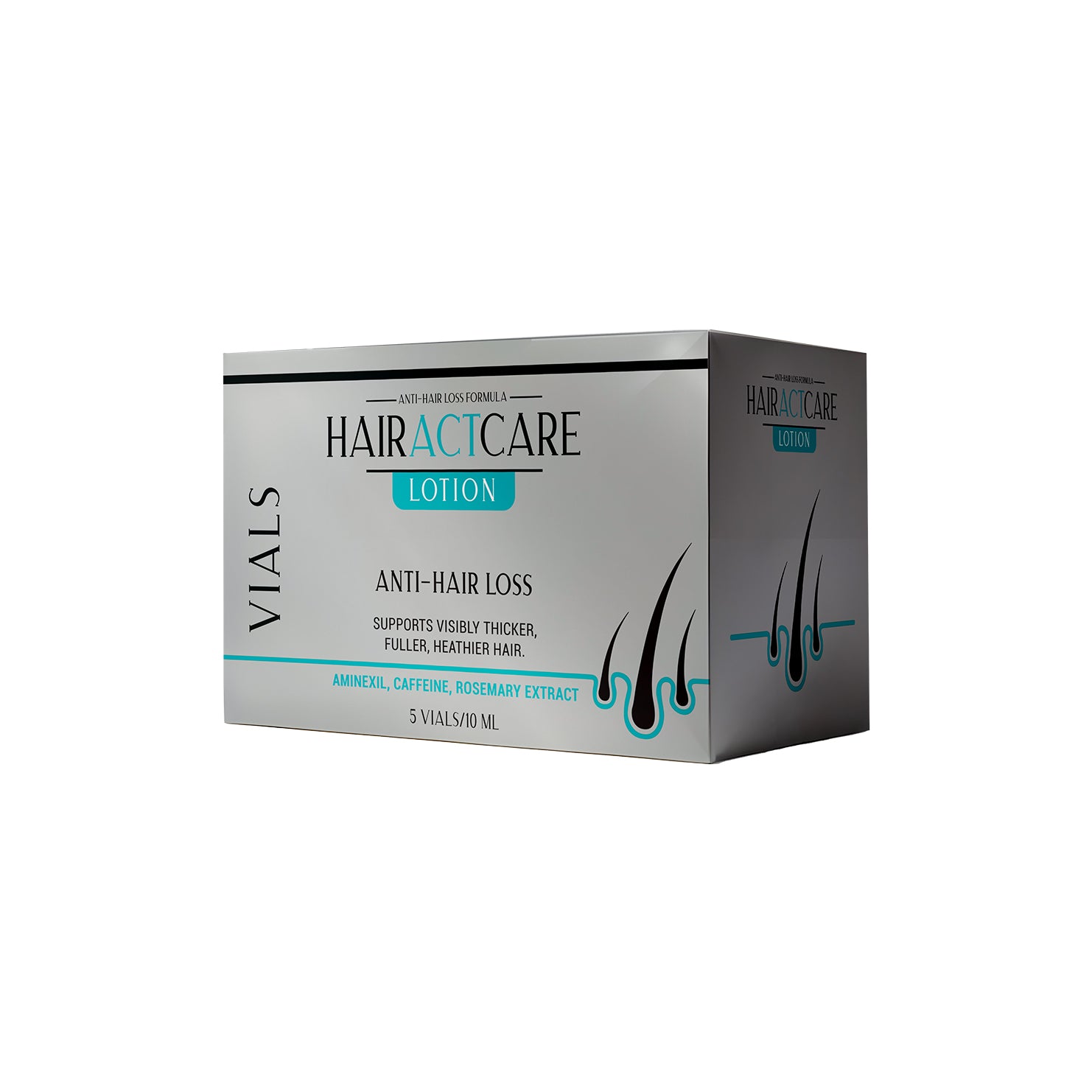 HairAct ampoules treat hereditary and accidental hair loss. They stop hair loss in 28 days by 93% and fill the gaps within 40 to 50 days by 89% by stimulating blood circulation 4 times stronger and nourishing the hair with all the vitamins and minerals without a greasy effect or any odors." It is intended for cases that suffer from hereditary baldness, occasional hair loss resulting from (psychological stress, pregnancy, breastfeeding, vitamin deficiency), etc., and for cases that suffer from gaps and hair that does not grow long.